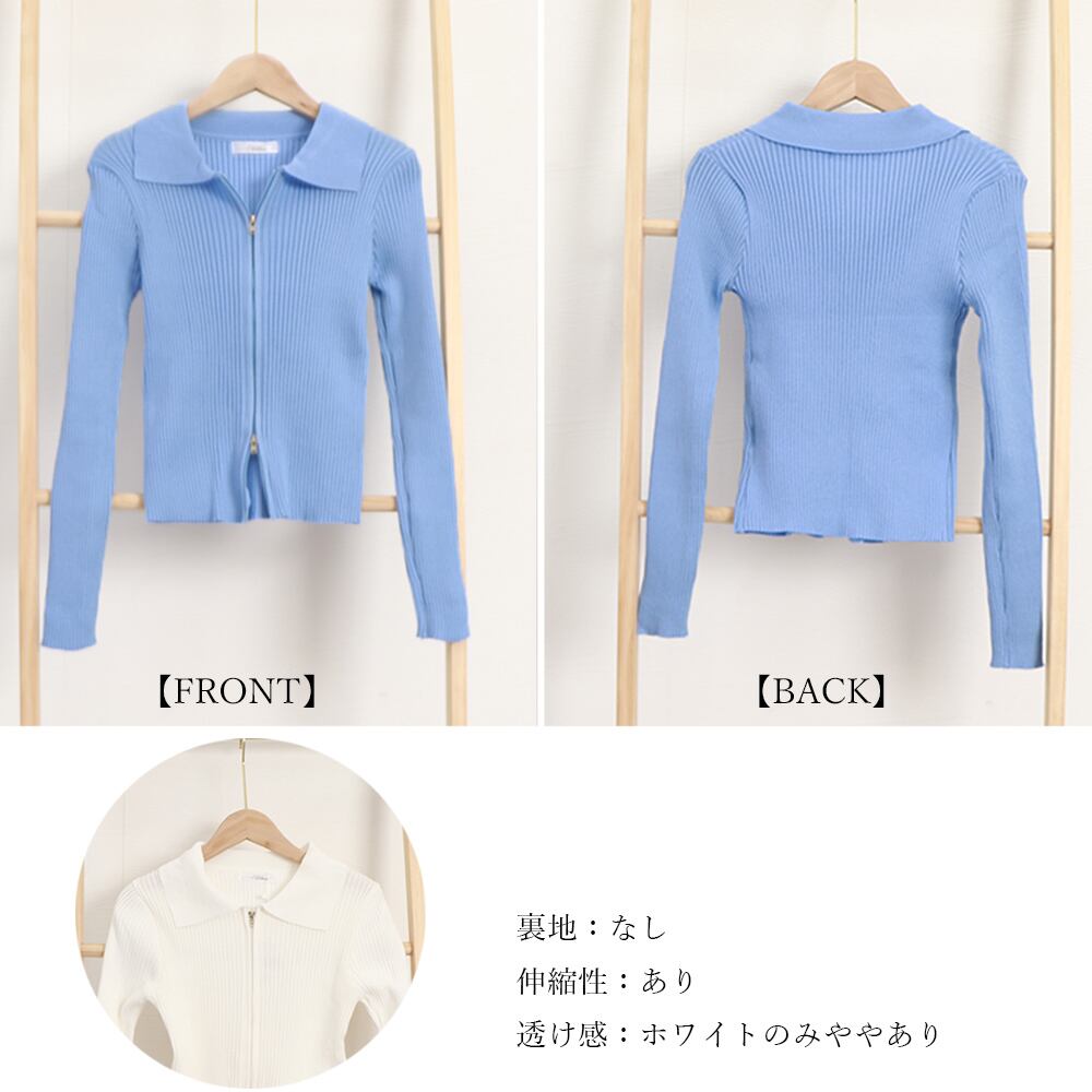リブニットトップスレディースジップアップ