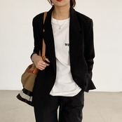 ベーシックなカジュアルスタイルにほど良くモードを取り入れた