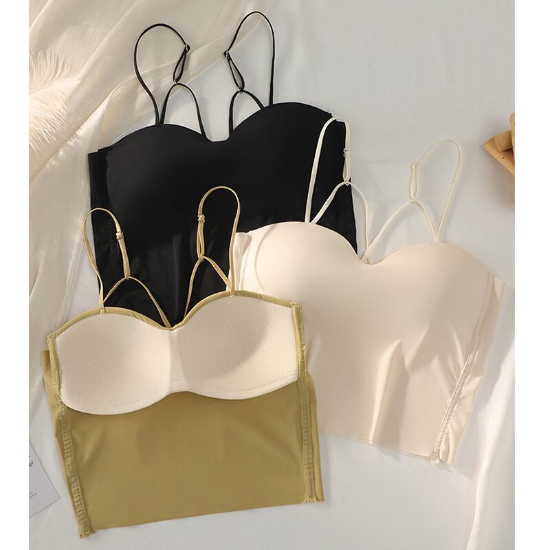 インナーキャミ ブラトップ インナー 下着 一体型パッド パッドつき 冷感素材 調整可能 黒